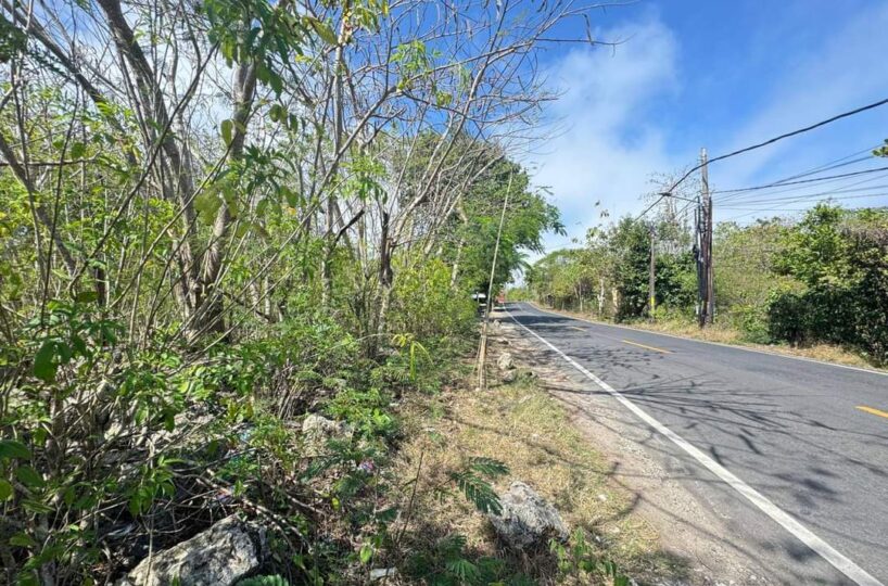 Zoned for Trade and Services, the property is suited to a variety of uses—from wellness and hospitality to retail or experiential concepts. Its flat topography, south-facing orientation, and irregular shape offer both visibility and versatility. Access is direct via an 8-meter-wide asphalt road, ensuring strong frontage in a high-traffic location.